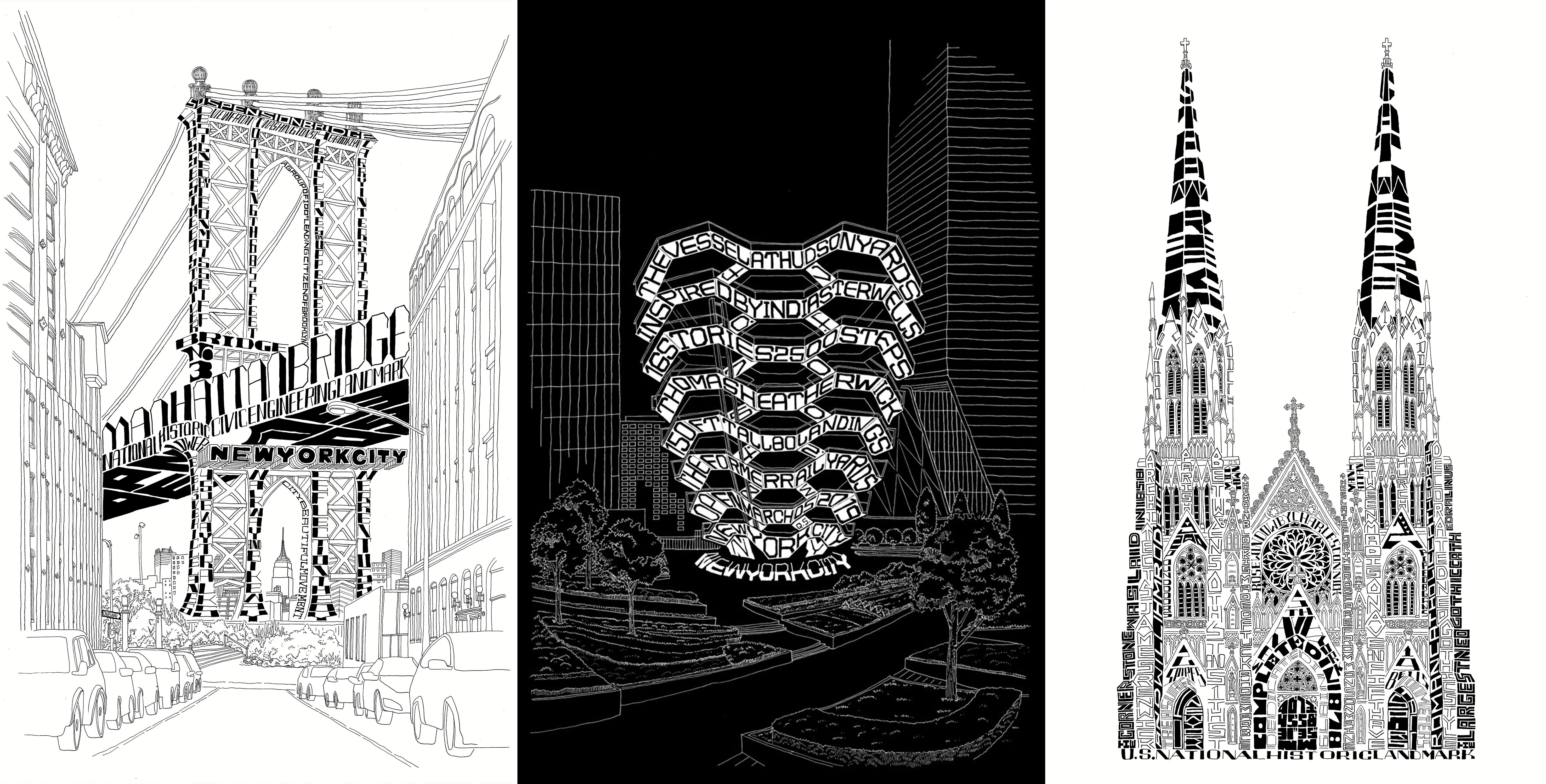 When I’m not working on environmental work, I make typographic representations of interesting buildings in New York as well as other cities. This is what led to MaesterDesign as well as commissioned projects.